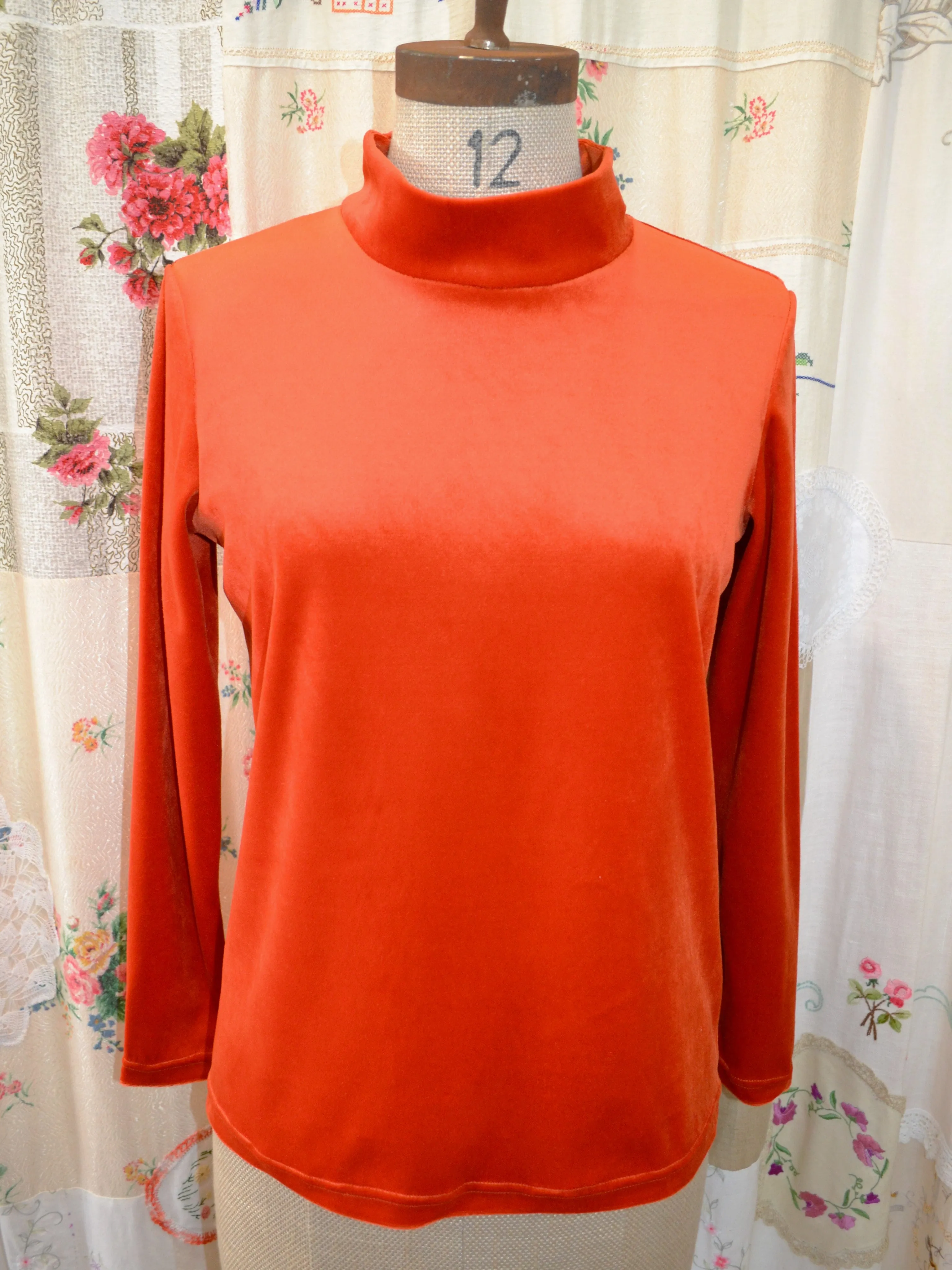These tops are cut from a piece of deadstock velour, a bit hard to photograph because the pile in the velour makes the colour so lush. The tone is true to colour, feels amazing!