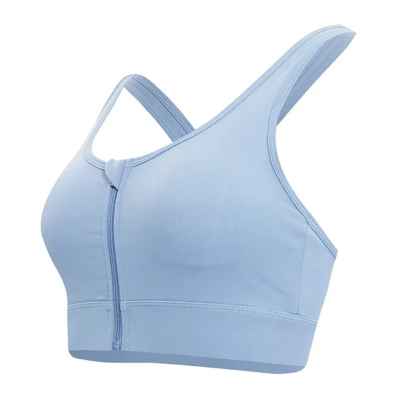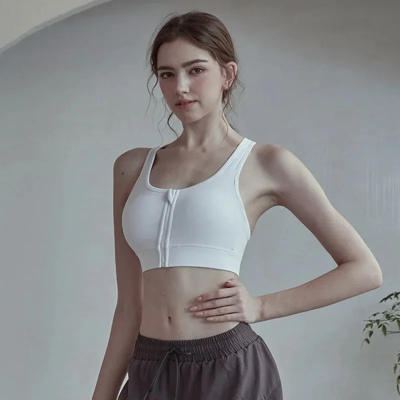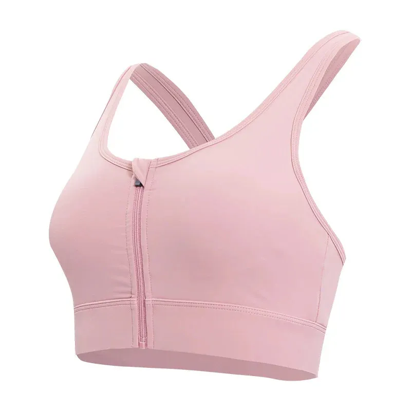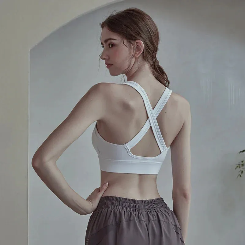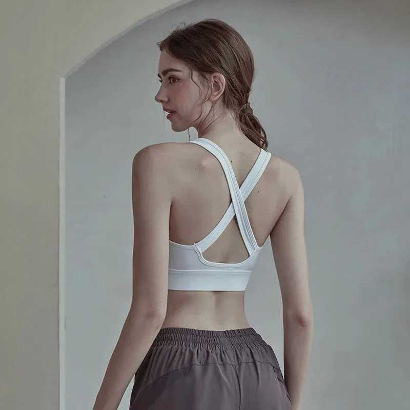 Crop Top Cross Back Yoga Vest Front Zipper Shockproof Underwear Fitness Athletic Sports Bra