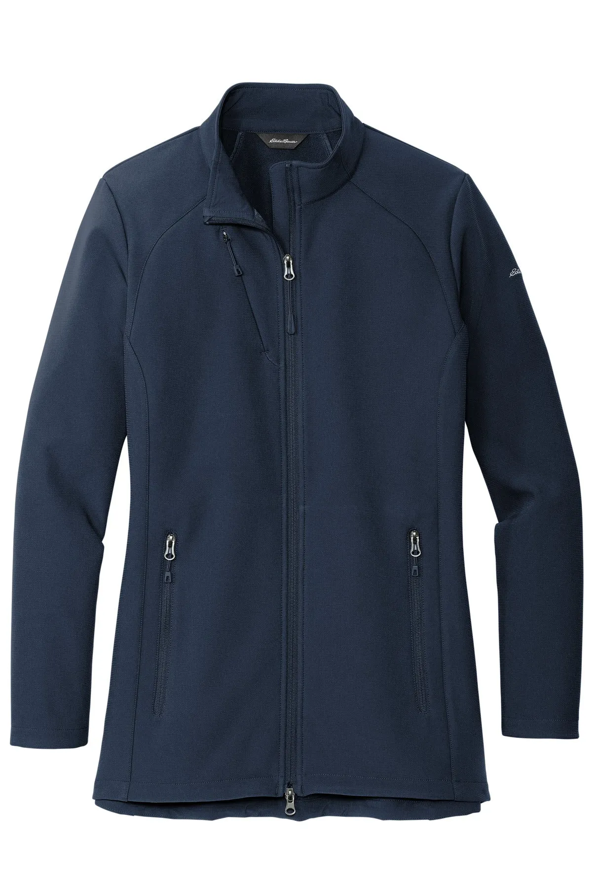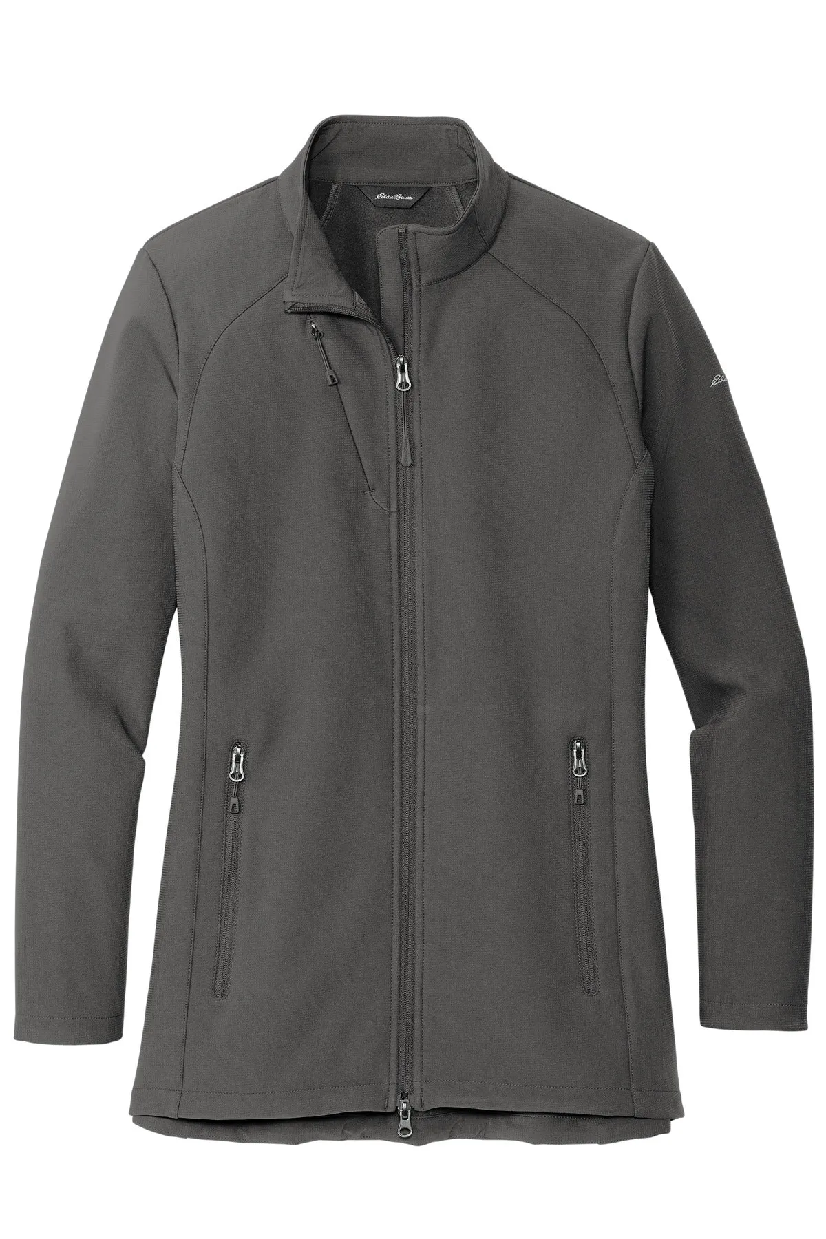 With 4-way stretch a subtle ripstop texture and weather protection-these are the next-generation soft shell jackets to wear on the trails or around town. Made for mobility these 3K/3K waterproof breathable jackets with a durable water-repellent (DWR) finish feature an interior storm flap and chin guard. Streamlined and refined elements include an invisible zippered chest pocket reverse coil center front zipper with an Eddie Bauer logo zipper pull. Adjustable locking drawcord hem and reverse coil zippered hand pockets. Longer length 2-way center front zipper. Embroidered Eddie Bauer logo on left shoulder. Made of 90/10 polyester/spandex bonded to a waterproof film insert and a 100% polyester fleece lining.