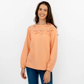 The Fleur cardigan is an update of our popular Charis style. A relaxed V-neck with button down placket and fringe detailing.
