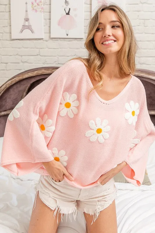 Oversized flower embroidered top available in three spring colors perfect for Spring. Soft and flowy.?