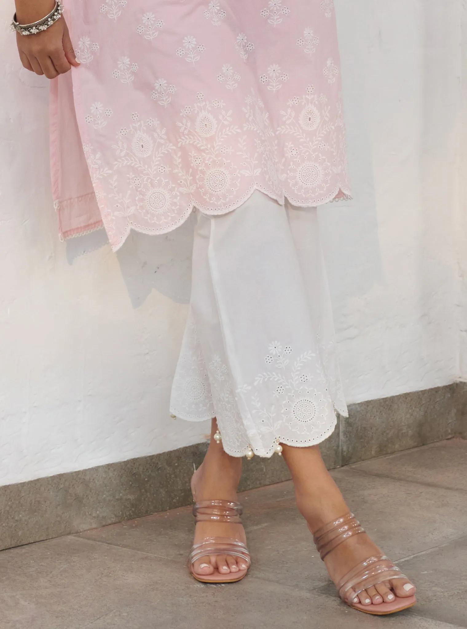 * This straight cut kurta with all over delicate booti embroidery with scallop border is going to be your wardrobe staple.?ÿ