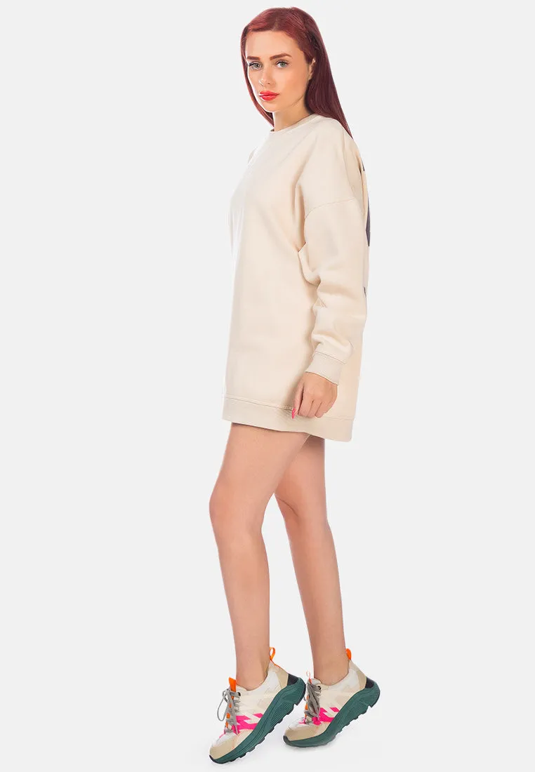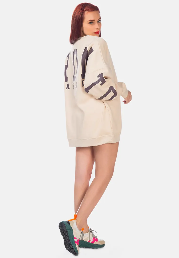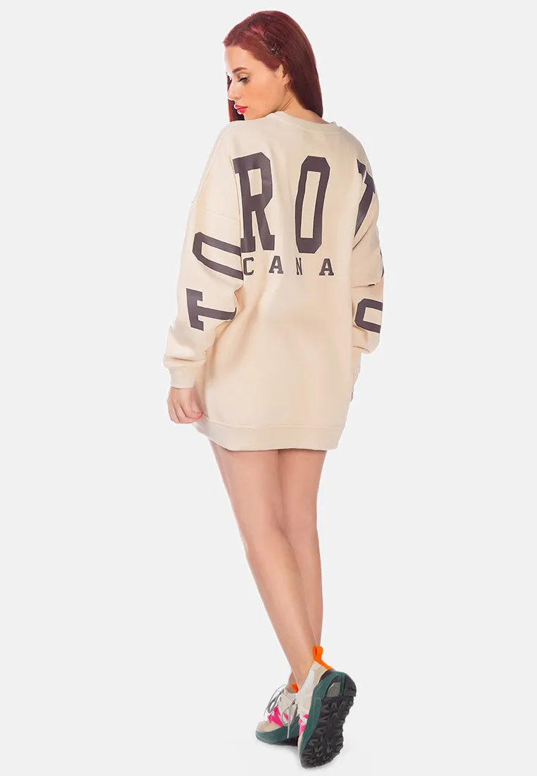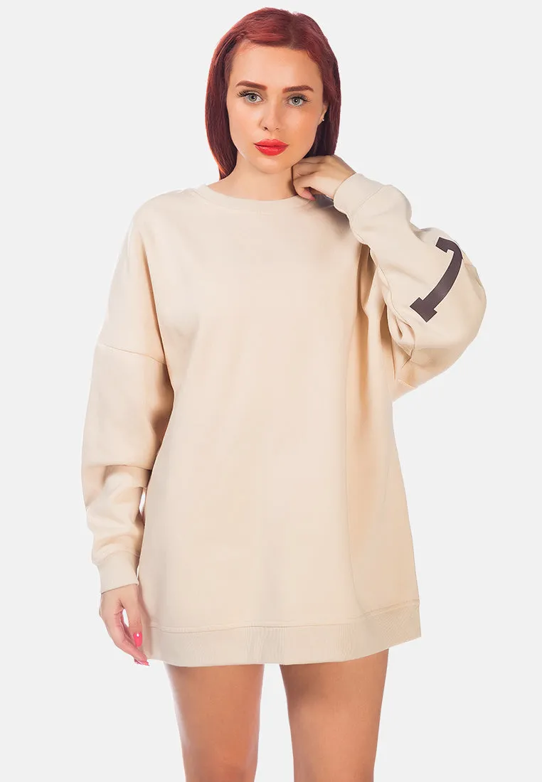 Snuggly knitted full sleeved oversized sweatshirt with print detail is cosy, warm and comfortable - keeps you warm and is perfect for get-togethers and indoor parties!