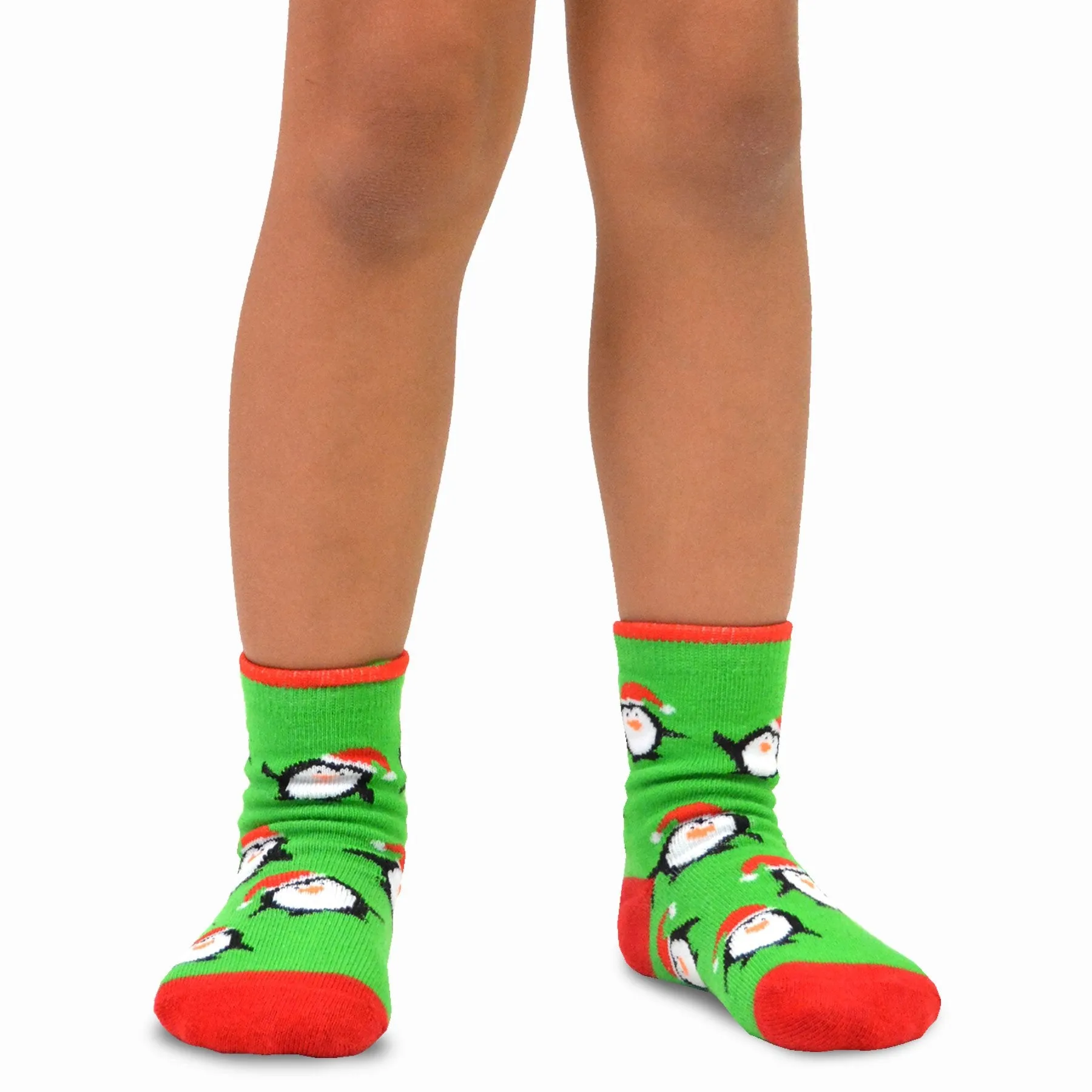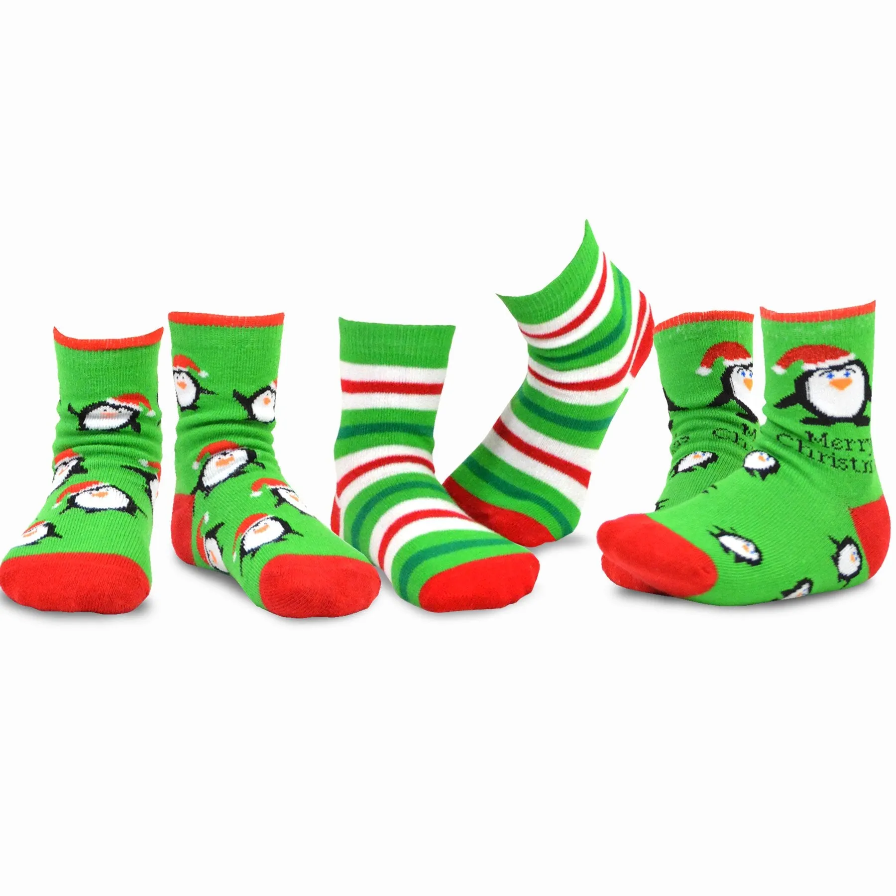 TeeHee Christmas Kids Cotton Fun Crew Socks 3-Pair Pack (All Over Penguin Stripe)