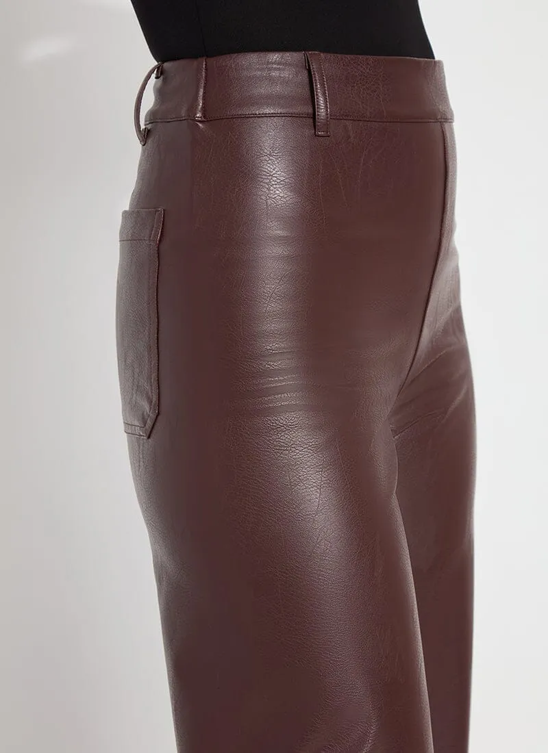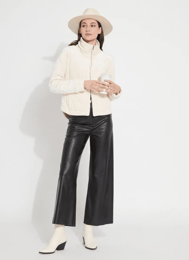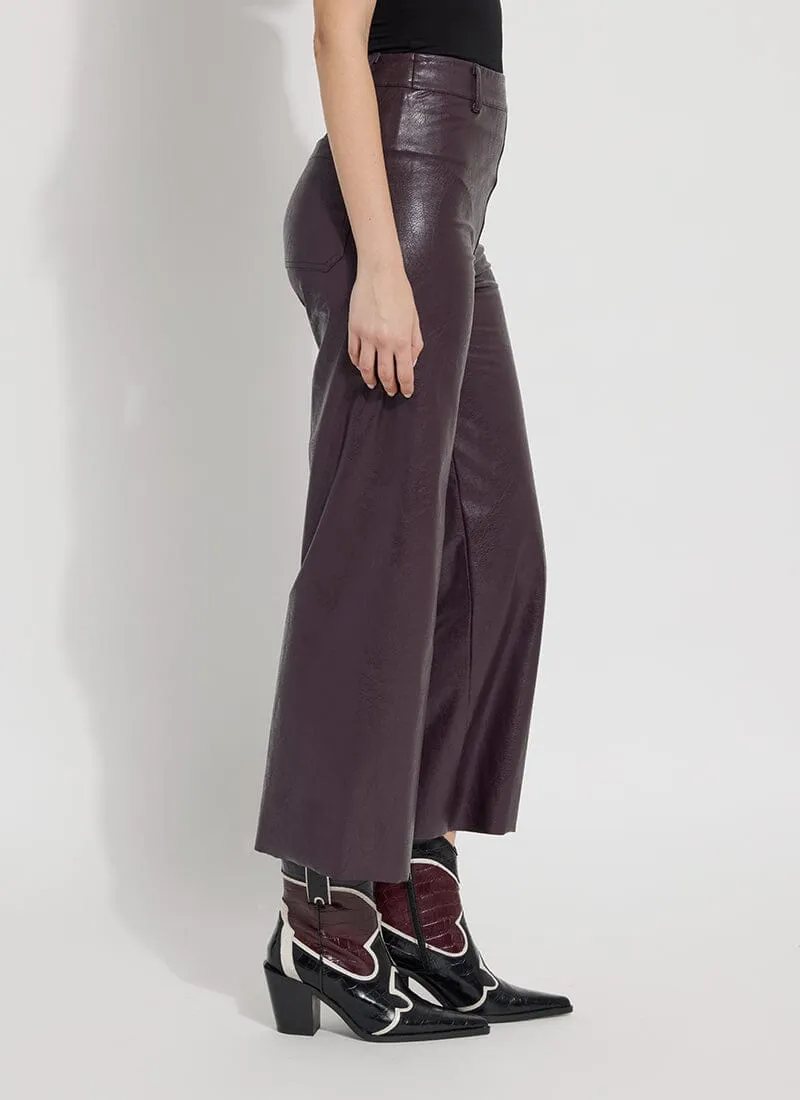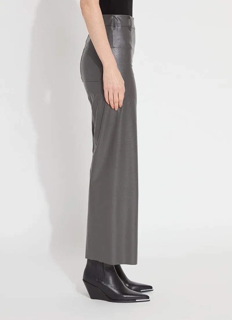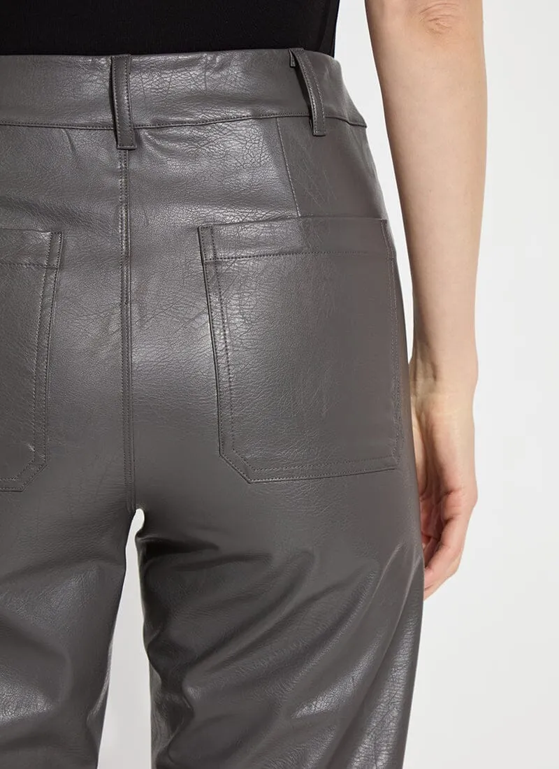 The Hi Waist Vegan Leather Wide Leg pant is fitted at the waist and hip before falling into a wide, ankle-length leg. Made from 4-way stretch Textured Vegan Leather, these wide-legged pants feature a concealed patented waistband, beltloops, patch pockets and no side seam for a slimming look. A raw-edge hem makes them simple to shorten. Partner these faux leather wide-leg pants with a tucked Shalom Satin Jersey Funnel Neck Top and zip up ankle boots.